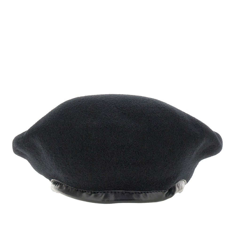 Berretto d'ispirazione militare realizzato in feltro di lana con bordo rifinito in morbida pelle sintetica, arricchiti dal piccolo logo lettering ricamato sul lato. Sfoderato.