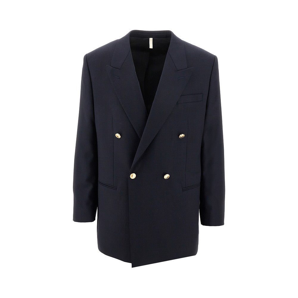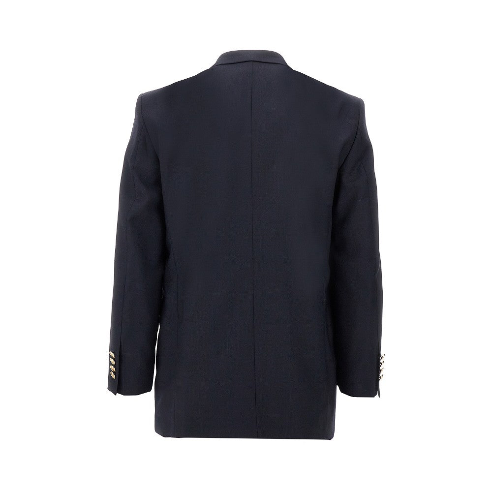 Blazer realizzato in jersey di lana, caratterizzato dalla chiusura doppiopetto con bottoni in metallo dorato. Revers a lancia, tasche laterali a filetto, tasca profilata sul petto e fondo manica a quattro bottoni. Taglio oversize con spalle imbottite. Fodera in viscosa. Due tasche interne a filetto.