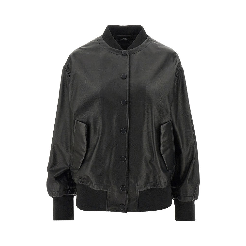 Blouson dal taglio bomber realizzato in morbida nappa con collo, polsini e fondo capo rifiniti in maglia a micro costine. Chiusura con bottoni a pressione rivestiti in nappa. Tasche laterali a filetto con pattina e bottone a pressione. Fodera in tessuto stretch. Vestibilità comoda.