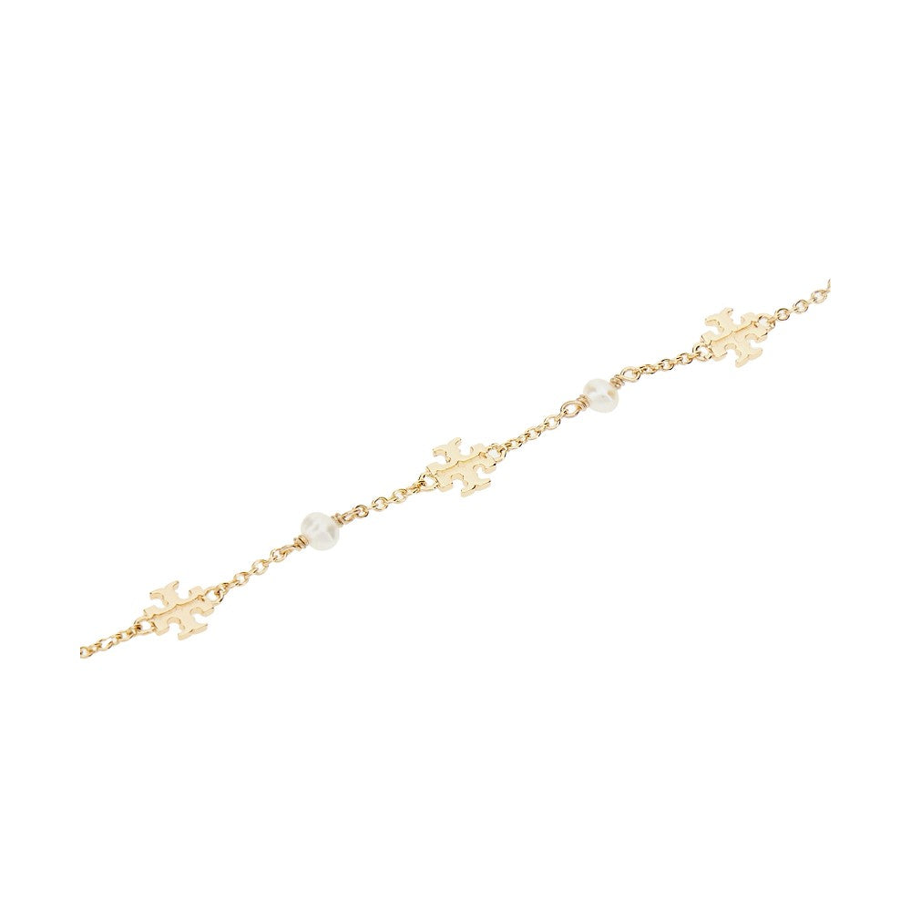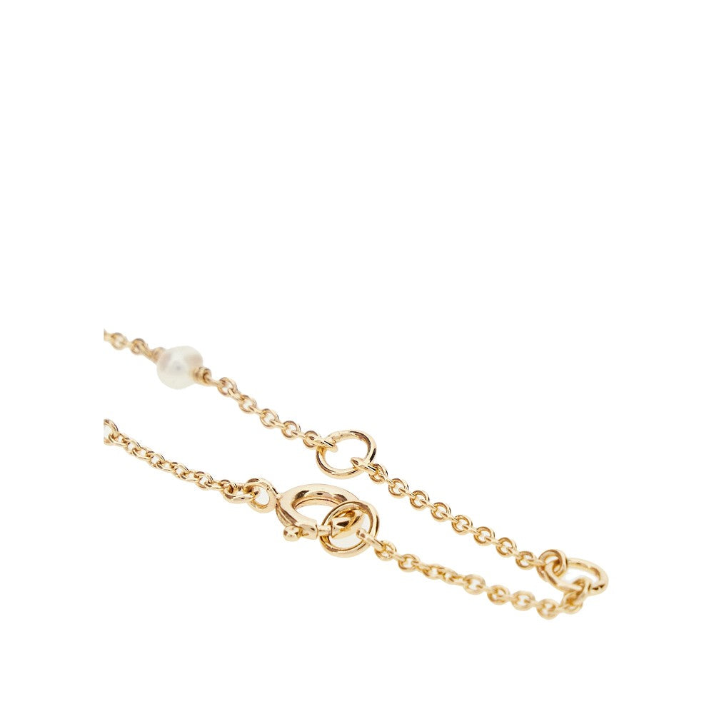 Bracciale in catena ultrasottile realizzato in ottone finitura oro, arricchito da mini perle coltivate e dettagli logo Doppia T. Chiusura regolabile con moschettone arrotondato.