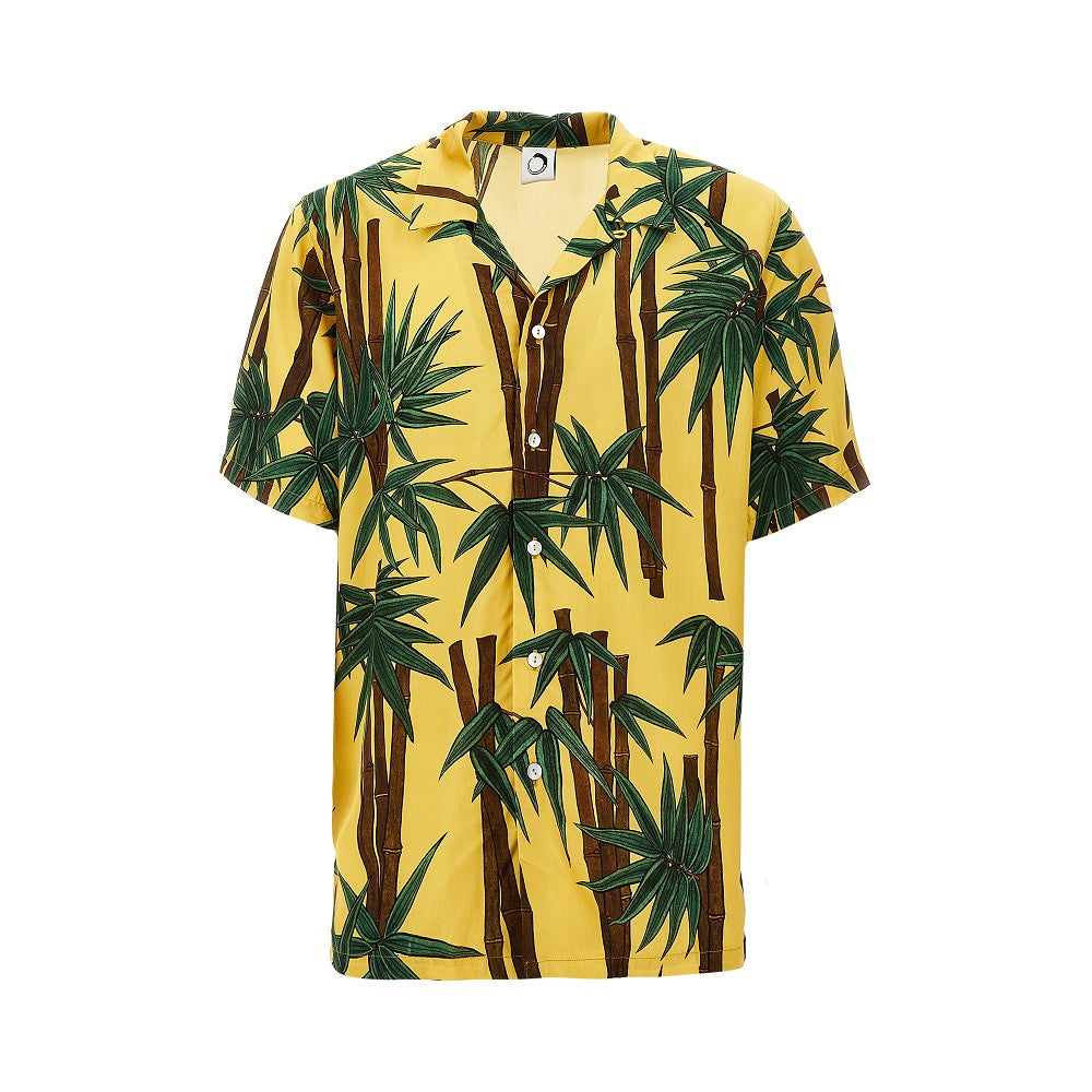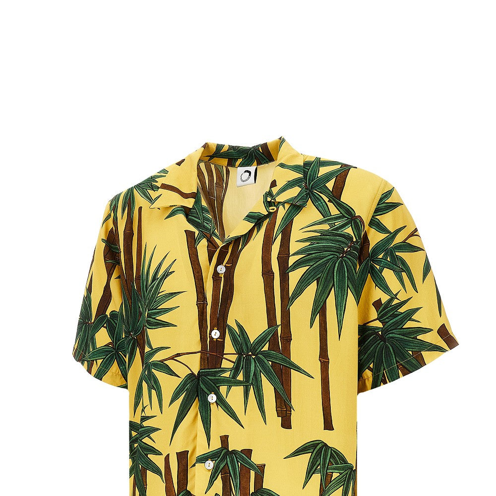 Camicia a manica corta realizzata in modal, arricchita dalla stampa Bamboo ispirata ai dipinti di Byōbu. Colletto bowling, chiusura con bottoni in madreperla e spacchetti laterali sul fondo. Taglio dritto e regolare.