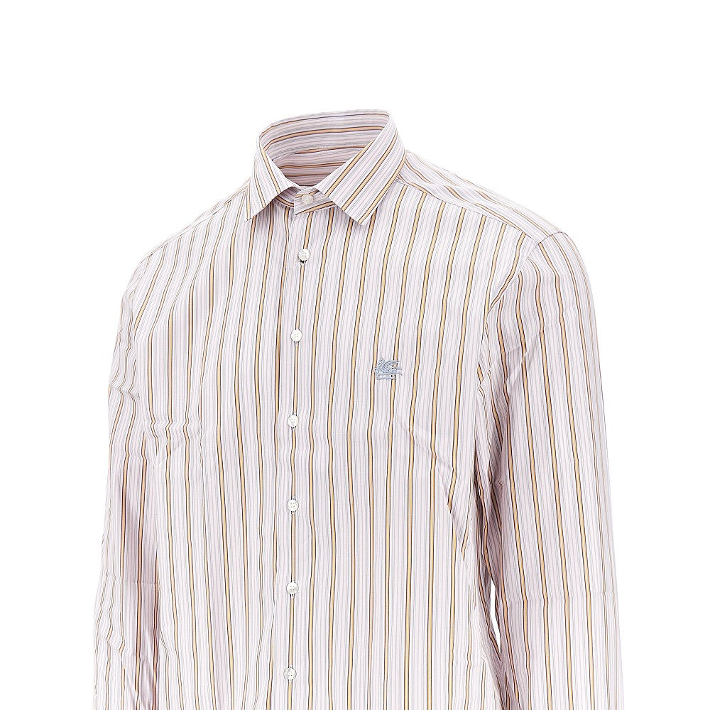 Camicia realizzata in popeline di cotone con motivo a righe, arricchita dal logo Pegaso ricamato sul petto. Chiusura con bottoni in madreperla, colletto a punta e polsini arrotondati regolabili con bottoni. Vestibilità regolare.