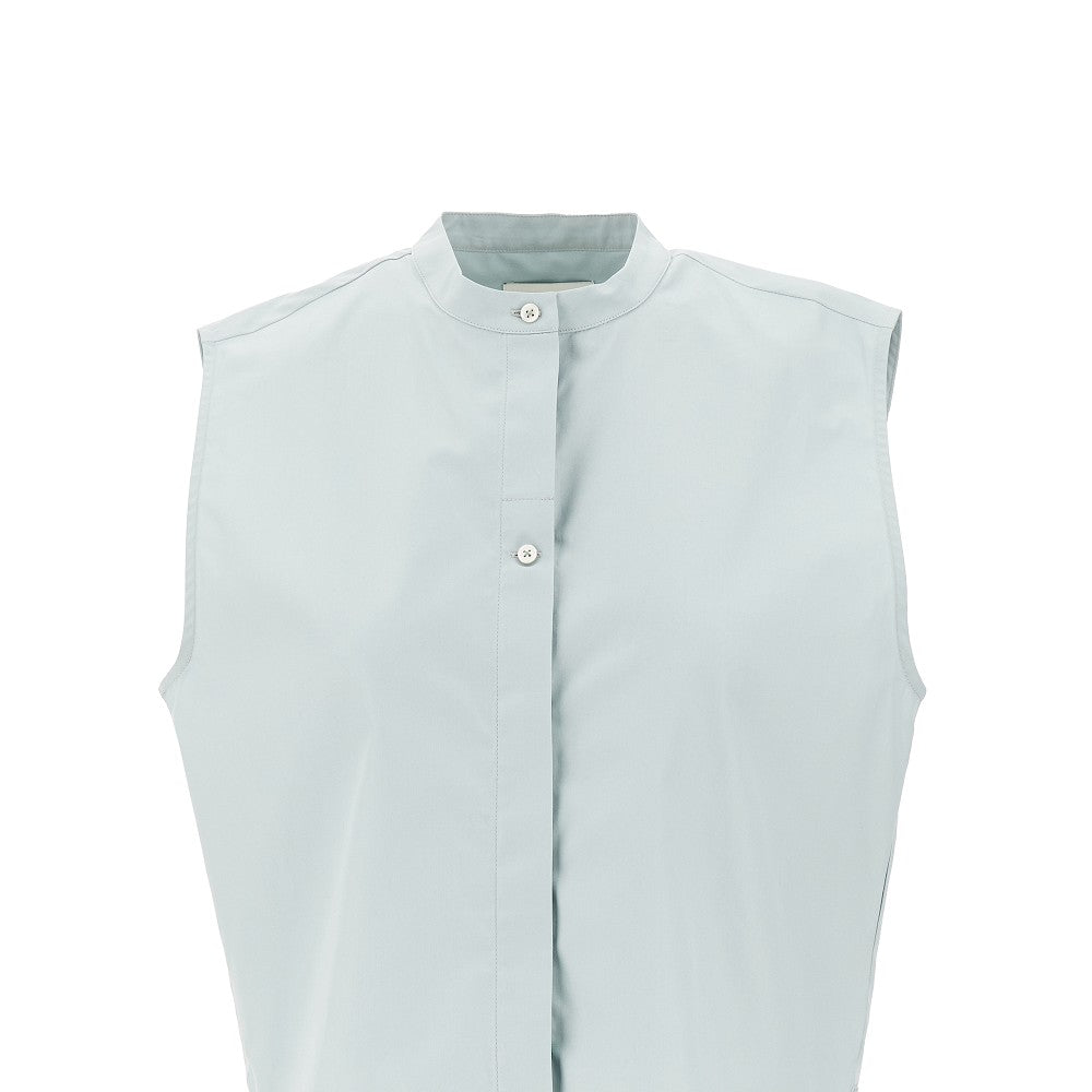 Camicia senza maniche realizzata in popeline di cotone sostenibile Abbottonatura frontale a scomparsa, colletto alla coreana e orlo stondato. Taglio dritto e regolare.