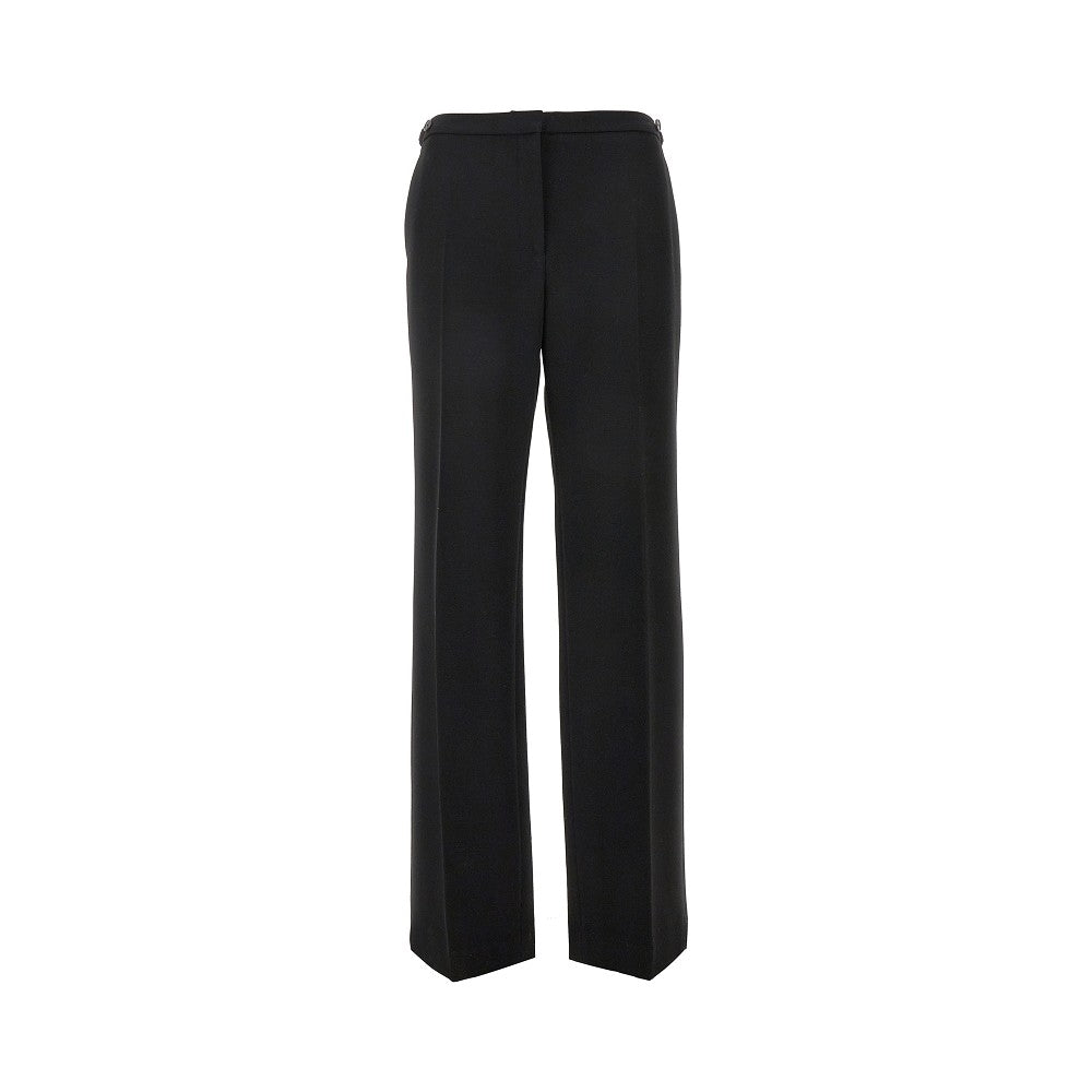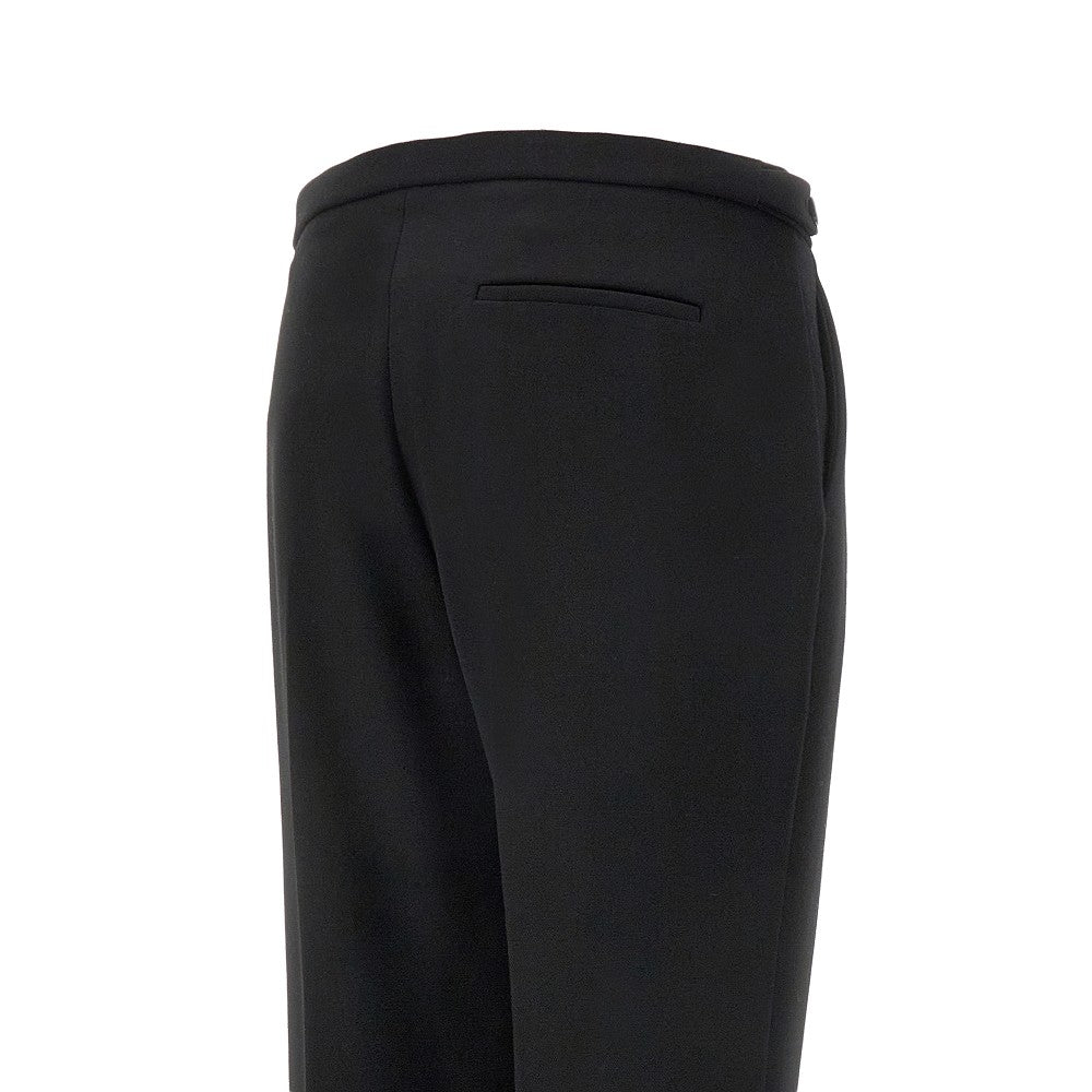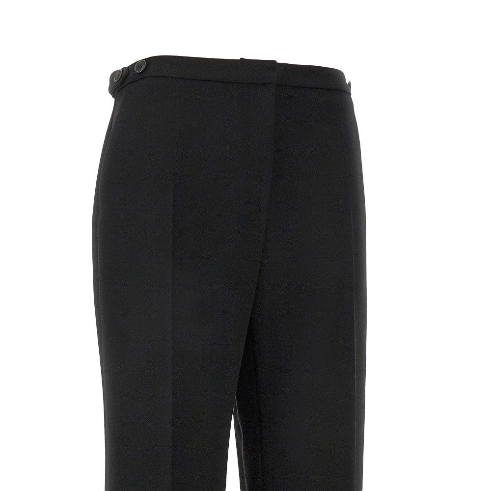 Pantalone sartoriale realizzato in lana giapponese, caratterizzato dalla silhouette regolare con gamba dritta e vita media. Vita regolabile con linguetta e bottoni sui lati. Patta con zip e chiusura con gancio a scomparsa. Tasche laterali oblique e una tasca a filetto sul retro.