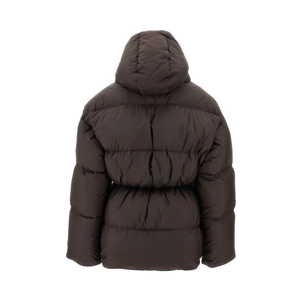Piumino realizzato in Micro Ripstop di nylon con imbottitura in piuma, caratterizzato dalla silhouette voluminosa ispirata all'Uomo Michlin con punto vita regolabile con coulisse. Chiusura con bottoni. Tasche laterali a toppa. Cappuccio.