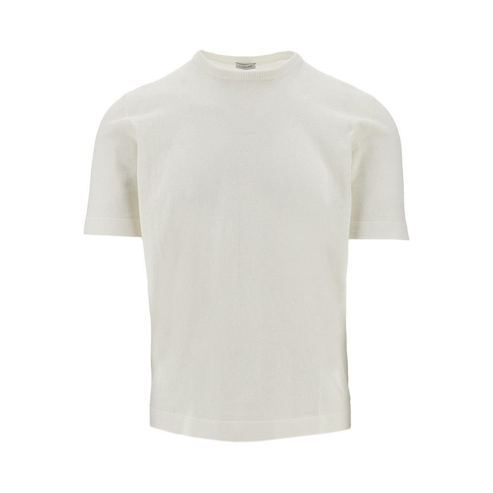 T-shirt a manica corta in maglia realizzata in sottile filato di puro cotone. Girocollo rifinito a costine. Vestibilità regolare.