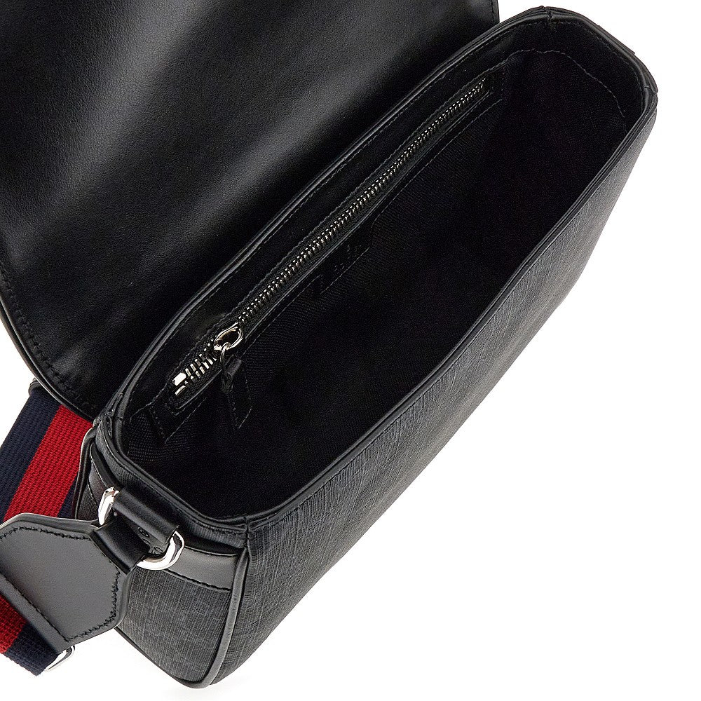 Borsa realizzata nell'iconico tessuto spalmato GG Supreme con dettagli in pelle, caratterizzata dalla tracolla regolabile in nastro Web. Logo inciso sul lato. Patta con chiusura magnetica. Interno foderato in tela con una tasca piatta con zip.