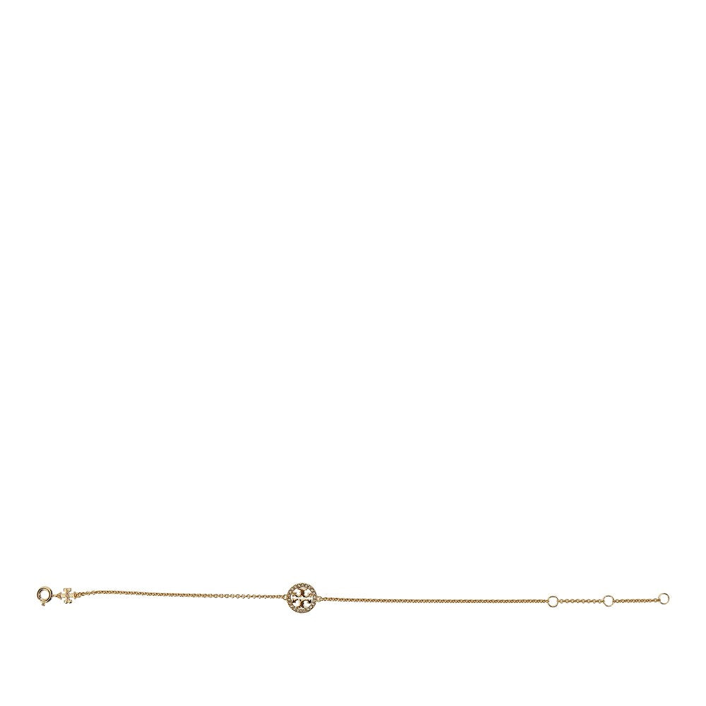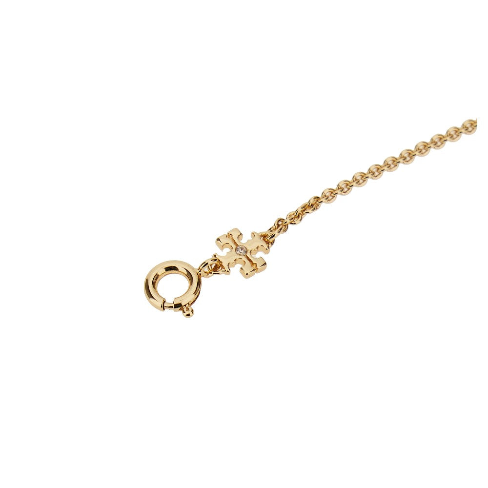 Bracciale sottile a catena realizzato in ottone finitura oro, arricchito dal dettaglio Doppia T con mini cristalli incastonato. Lunghezza regolabile, chiusura con moschettone.