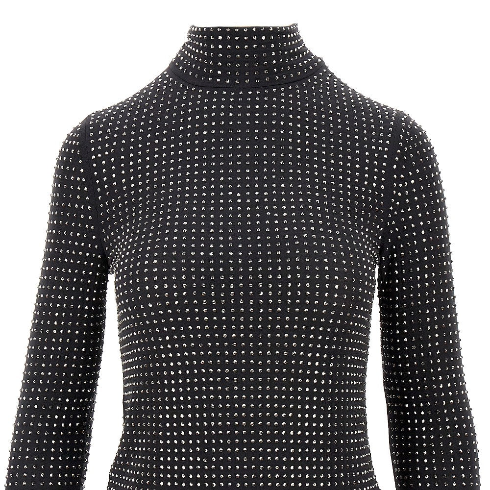 Top a manica lunga con collo a lupetto realizzato in jersey elasticizzato, arricchito da strass applicati all-over. Vestibilità slim.