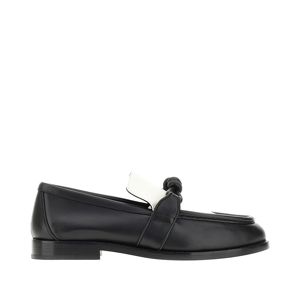 Mocassini Astaire realizzati in morbida pelle bicolore (bianco e nero), caratterizzati dal dettaglio Knot sul davanti. Fodera e soletta in pelle. Suola in cuoio con intarsio in gomma.