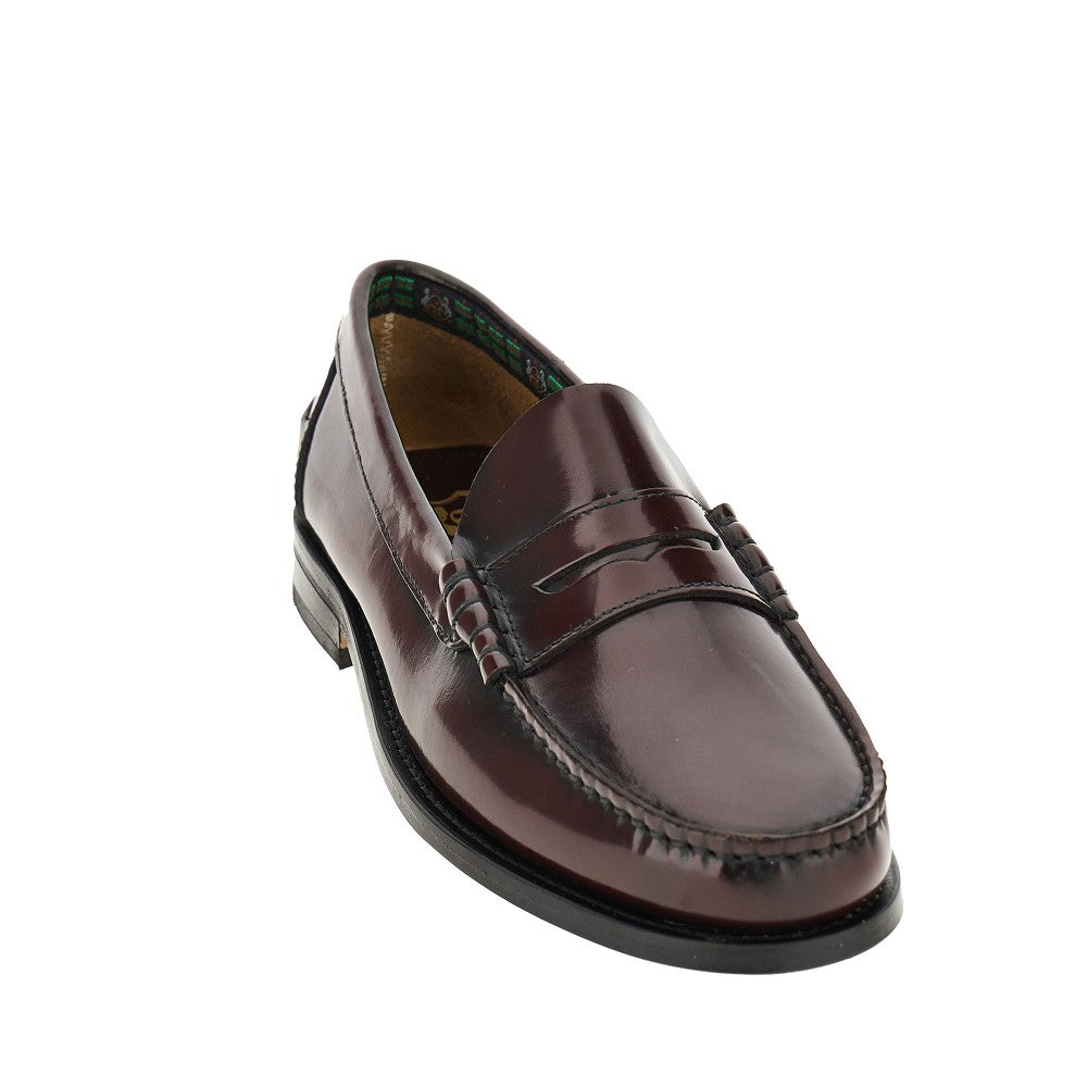 Mocassini College realizzati artigianalmente in pelle lucida. Interno sfoderato con soletta in pelle. Suola in cuoio e sottotacco in gomma.