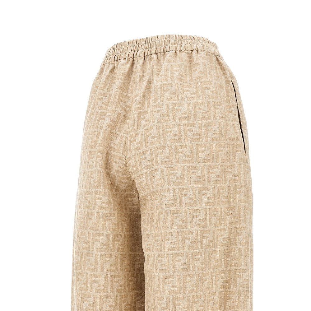 Pantalone a gamba ampia realizzato in denim chambray di misto cotone e lino con motivo FF in jacquard all-over. Vita elasticizzata. Tasche inserite nelle cuciture laterali. Vestibilità regolare.