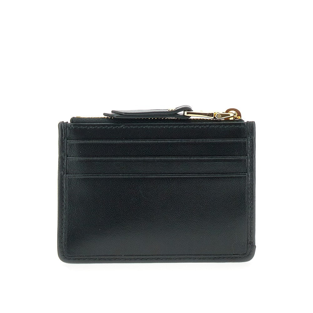 Portacarte realizzato in nappa con iconica trapuntatura matelassé e logo in metallo dorato sul davanti. Tre slot portacarte sul retro. Tasca con chiusura zip, fodera in nappa e portachiavi interno removibile.