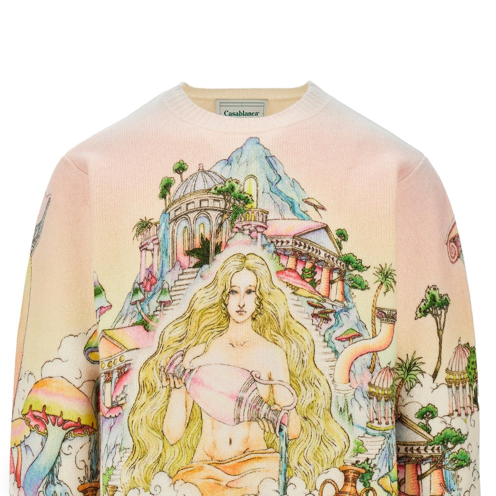 Pullover realizzato in filato di misto lana e cachemire, arricchito dalla stampa grafica "The road to knowledge". Girocollo, polsini e fondo capi rifiniti a costine. Vestibilità regolare.