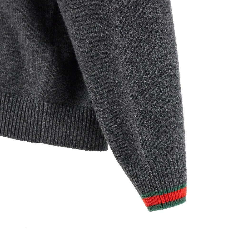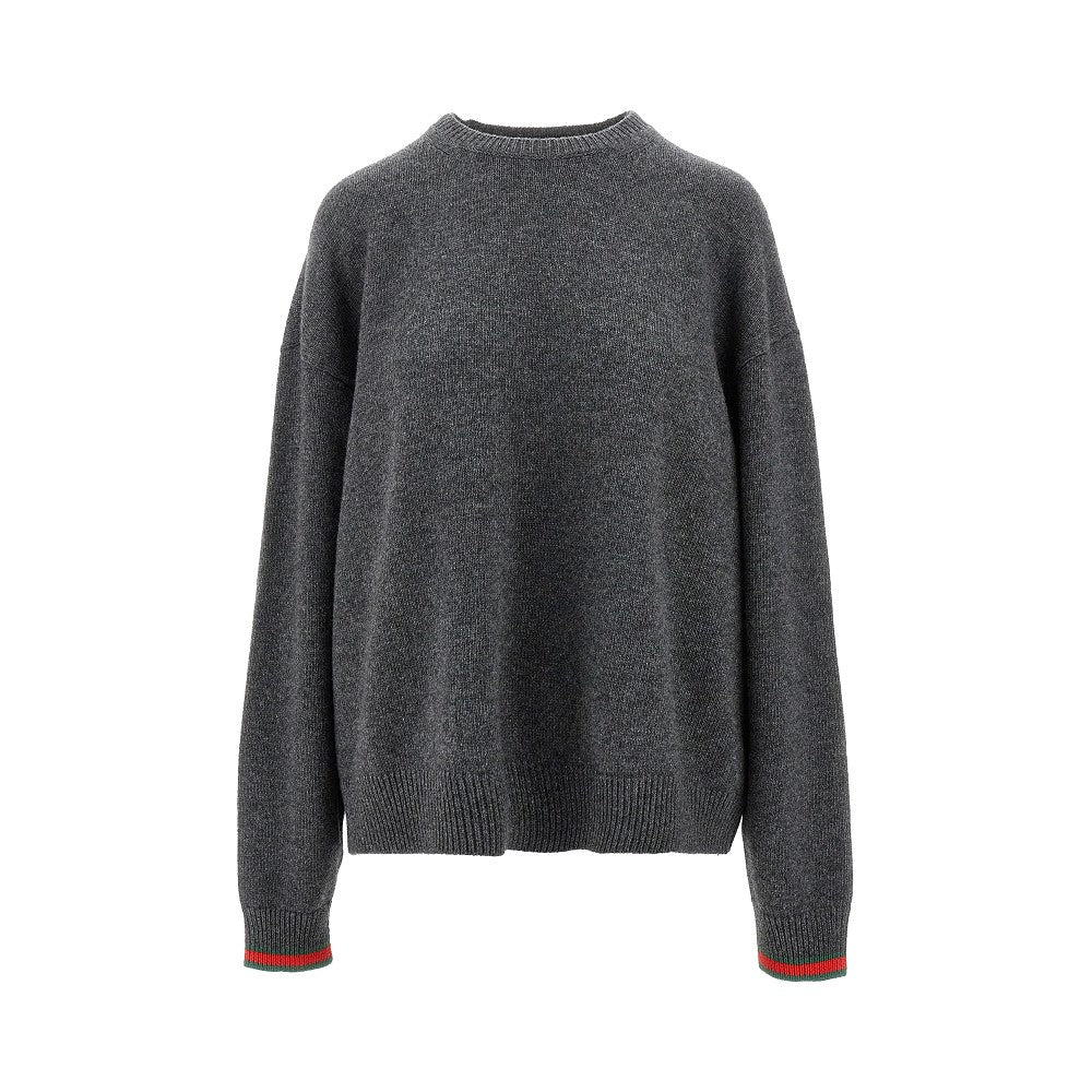 Pullover realizzato in filato di misto lana e cachemire, arricchito dal motivo Web in jacquard sul fondo manica. Girocollo, polsini e fondo capo rifiniti a costine. Silhouette oversize con spalle basse.