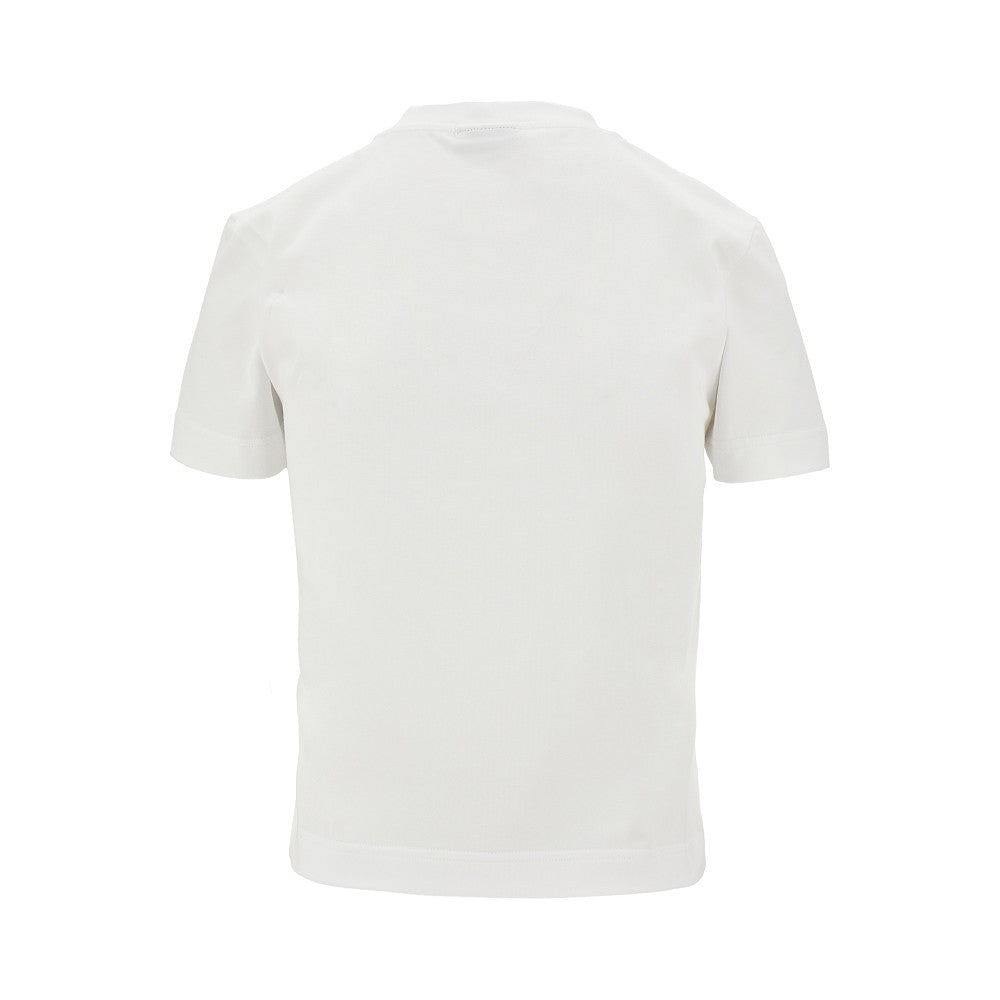 T-shirt a manica corta in jersey di cotone elasticizzato, arricchita dal nastro in gros-grain con logo ricamato applicato sul davanti. Girocollo rifinito in micro costine. Vestibilità slim con lunghezza leggermente cropped.